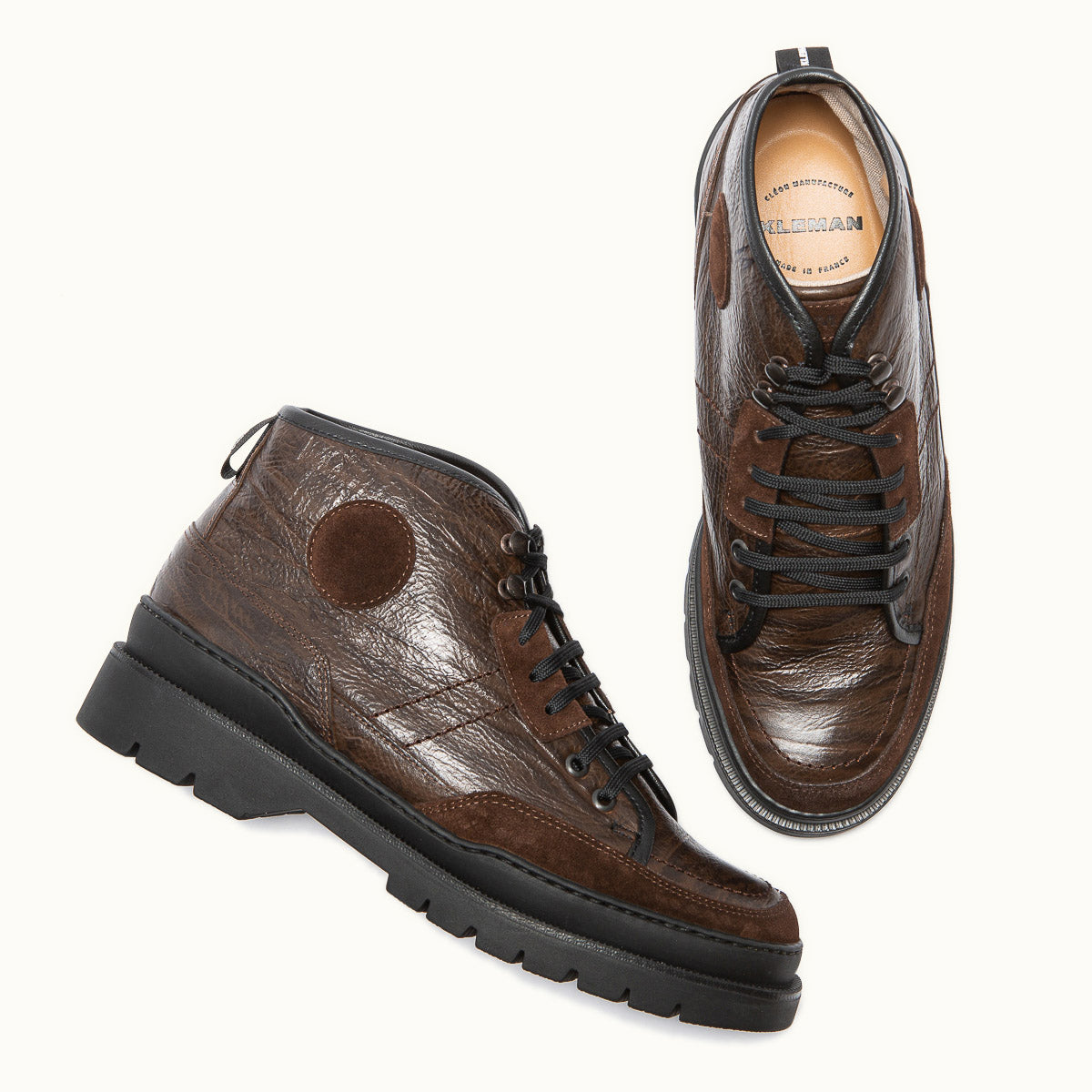 Ce modèle PARTISAN VGT Marron offre un style brut et authentique et a été fabriqué dans notre atelier du Maine et Loire en France.